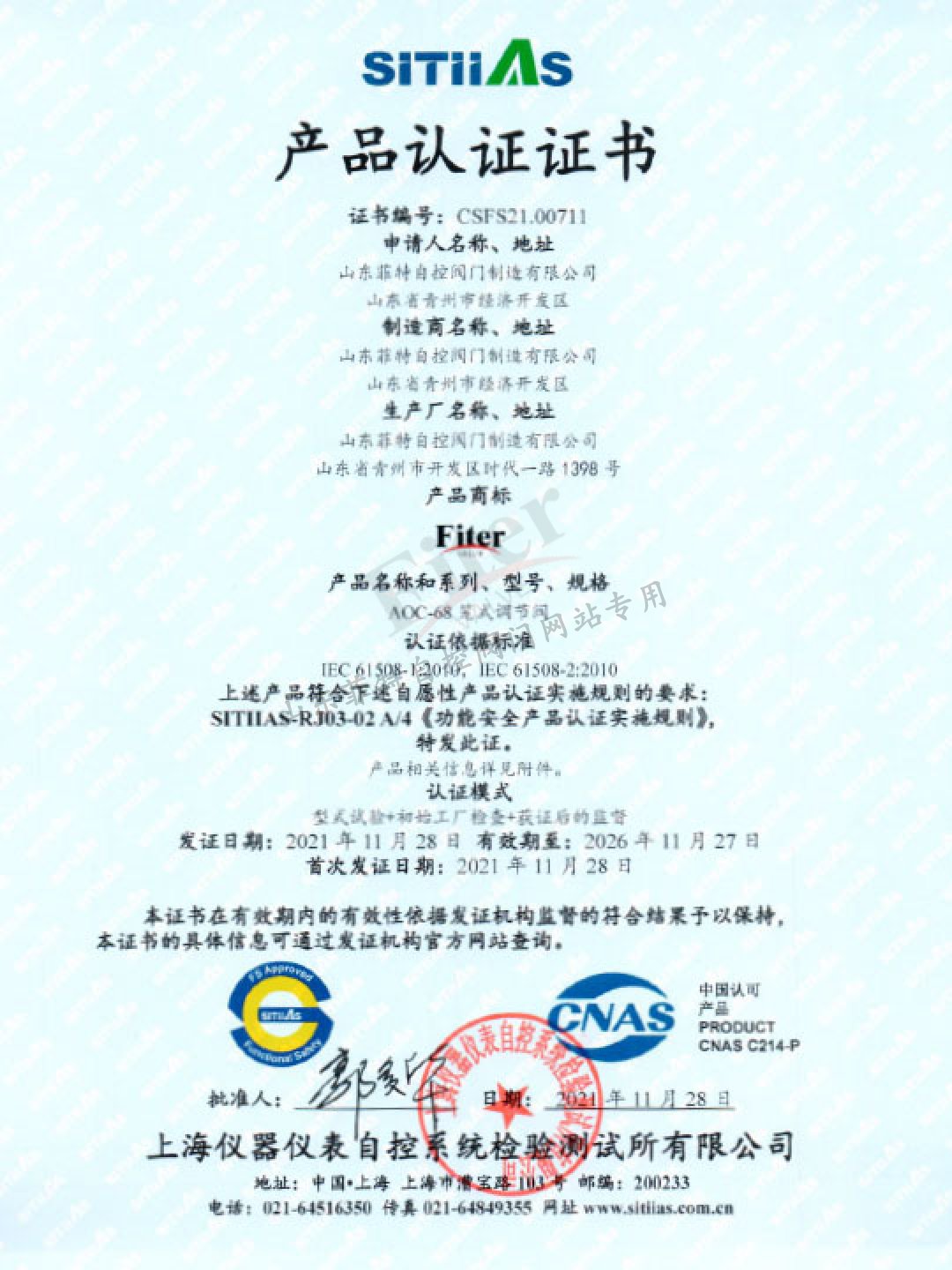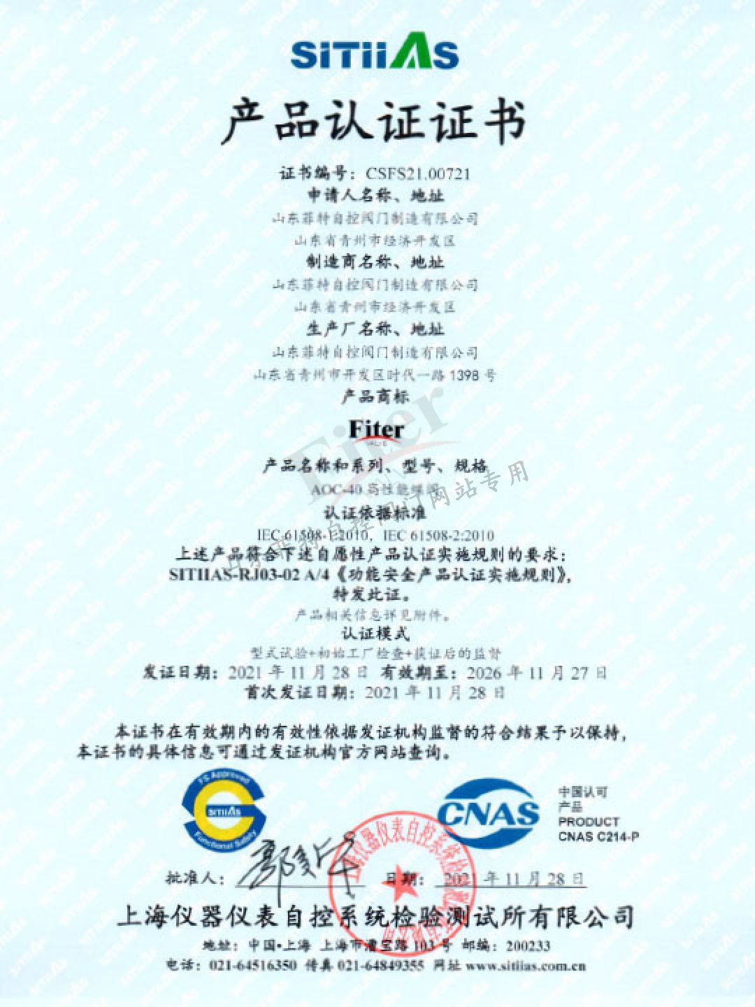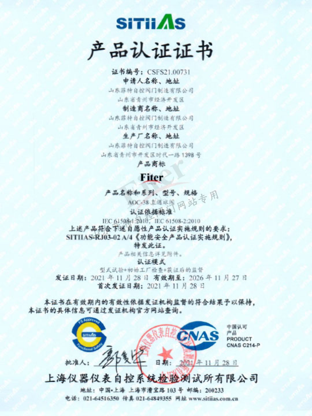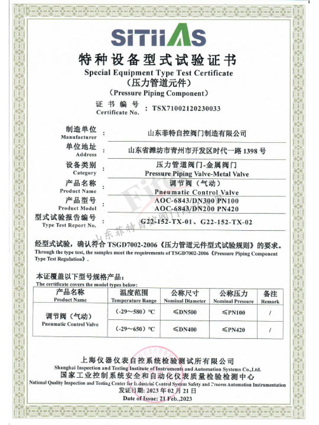 山東菲特自控閥門制造有限公司