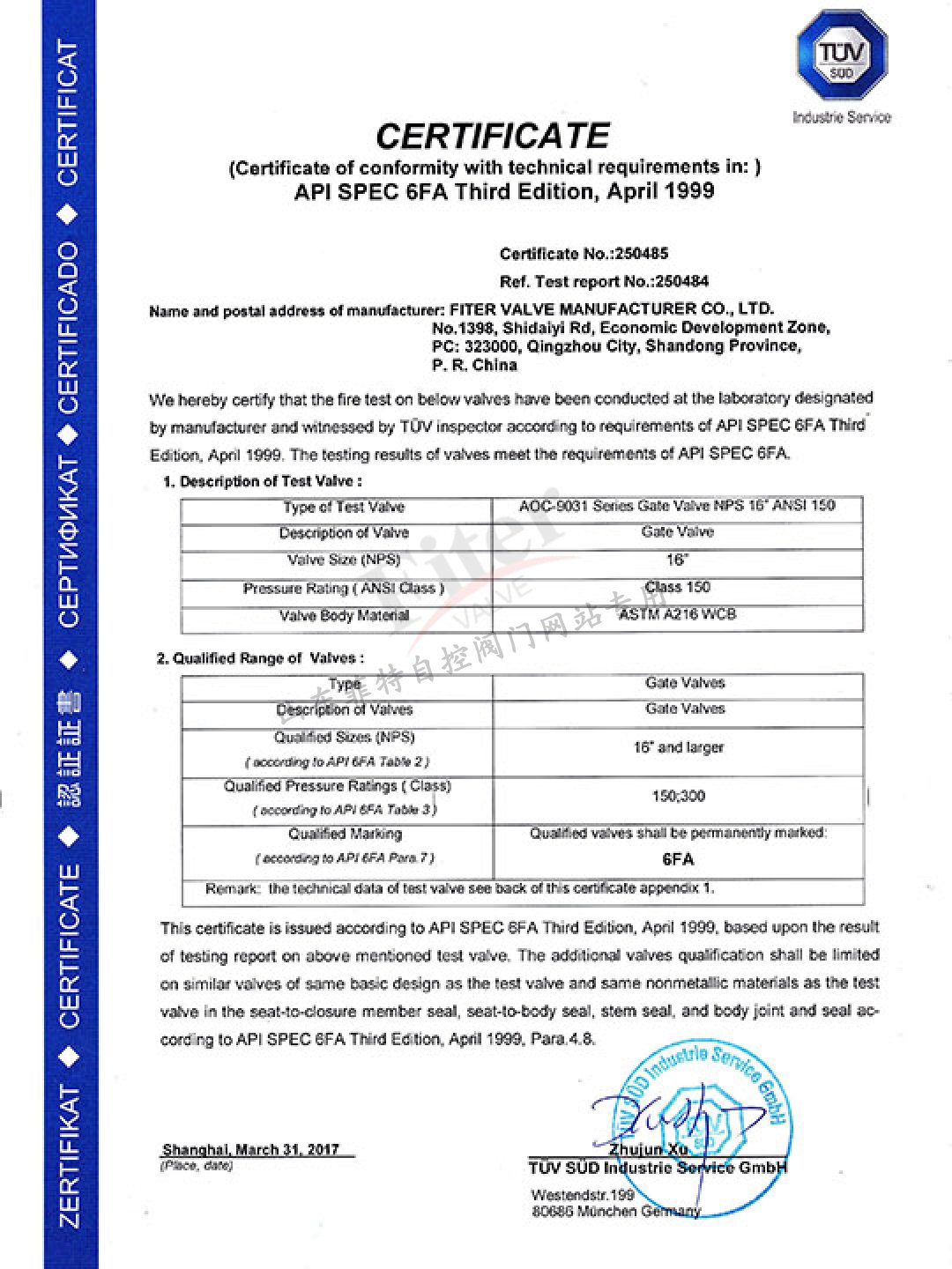 閘閥API 6FA 認證