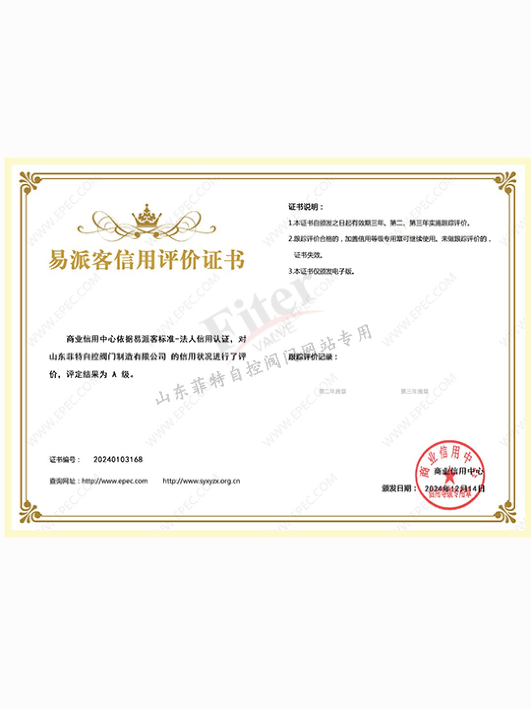 易派客信用評價證書